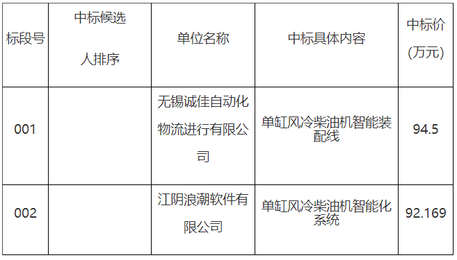 发电机组智能制造生产线招标 中标公示
