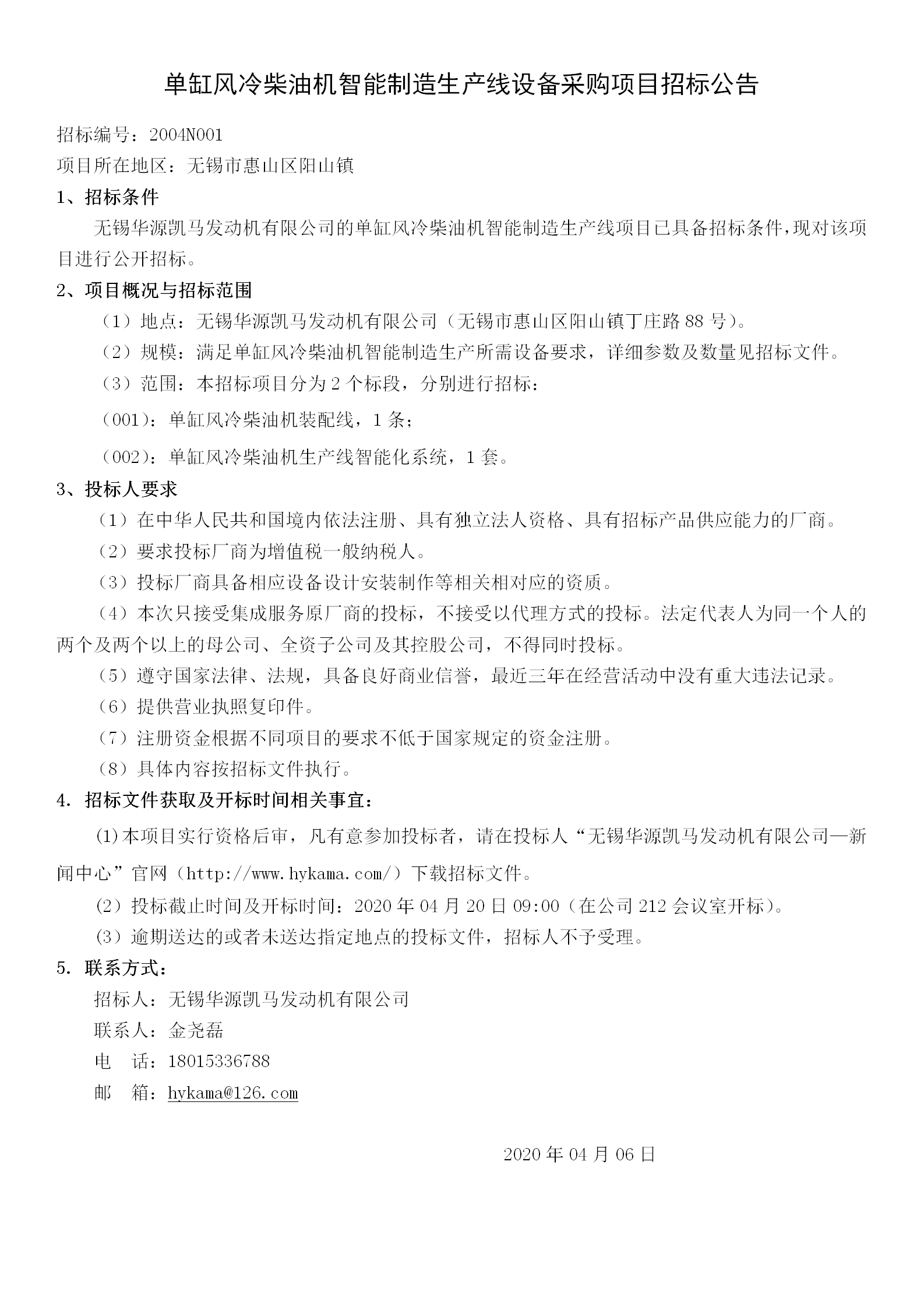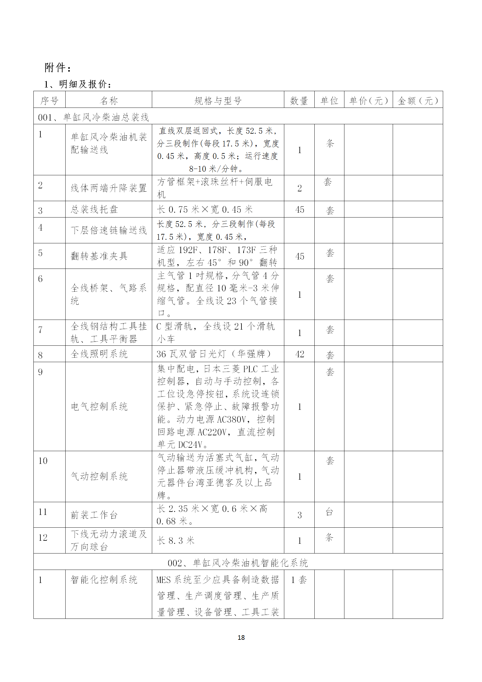 单缸风冷机智能制造生产线招标