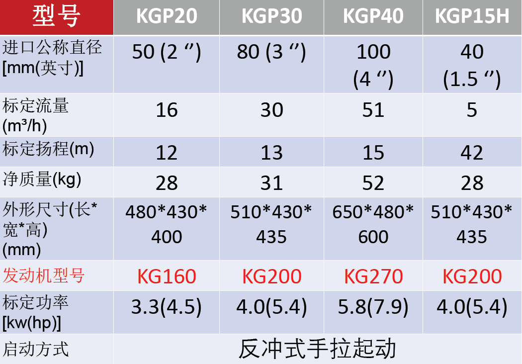 型号:KGP15H 功率:4KW 发动机型号:KG200