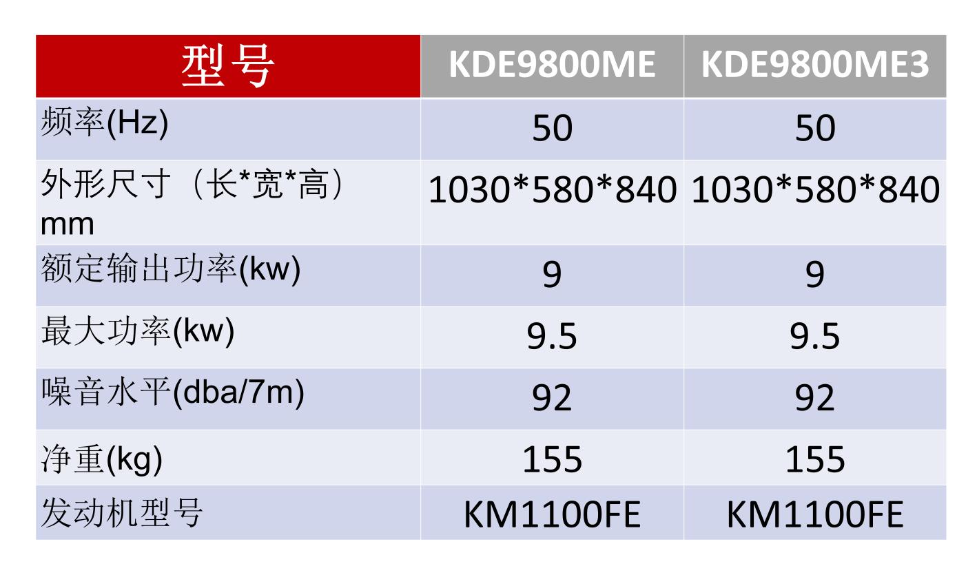 型号:KDE9800ME 功率:9KW 发动机型号:KM1100FE