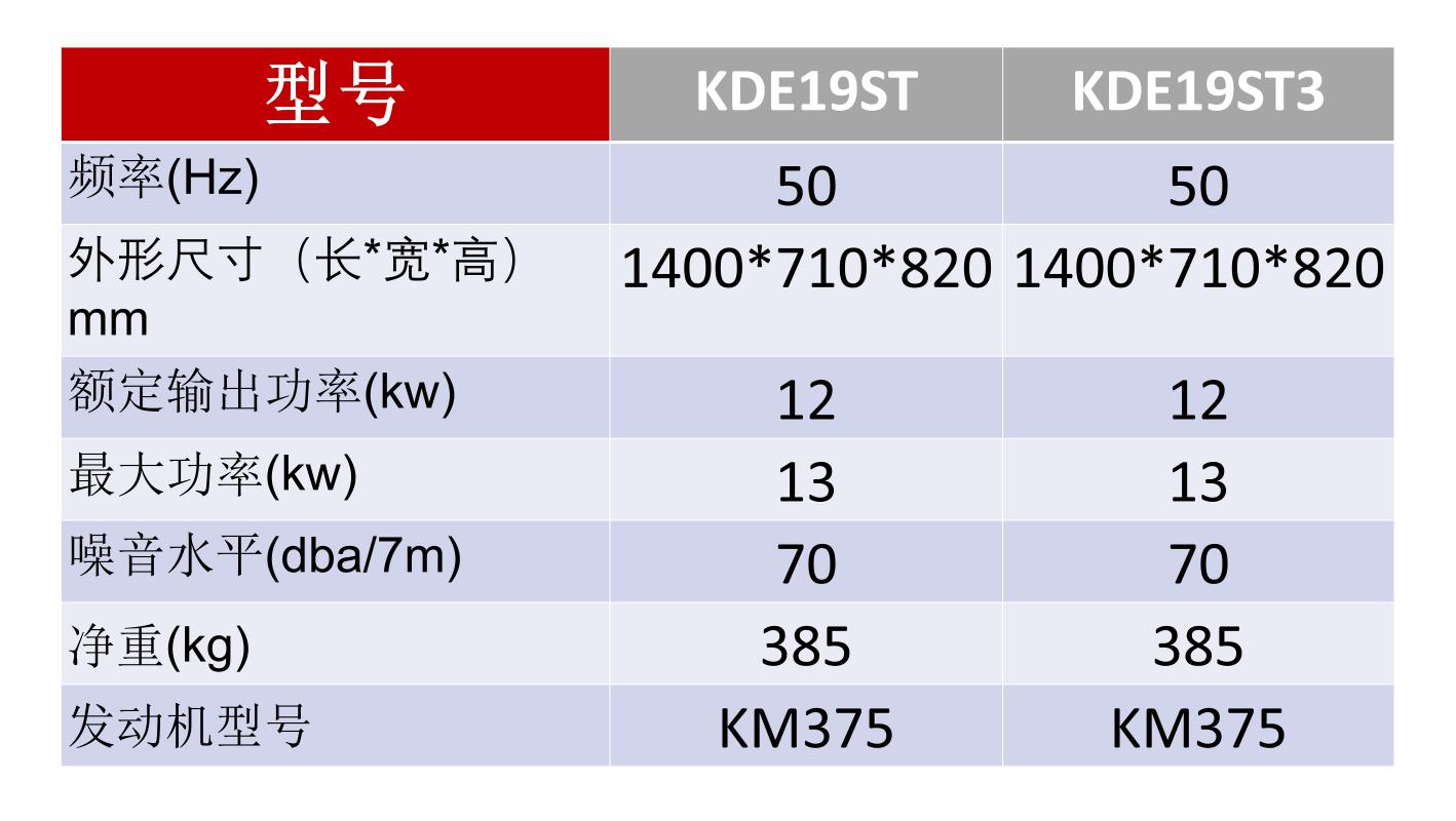 型号:KDE19ST 功率:12KW 发动机型号:KM375